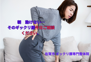 朝「動けない」「立ち上がれない」そのギックリ腰、佐賀市で専門対応しています。